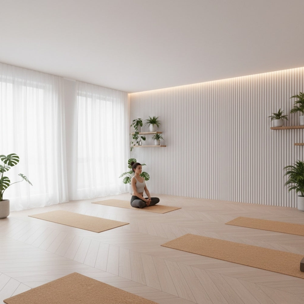 Painel acústico ripado em branco que combina funcionalidade e design moderno. Reduz ruído ambiente enquanto melhora a acústica do espaço, ideal para salas de estar, escritórios e estúdios. O acabamento ripado em branco integra-se perfeitamente em qualquer decoração, oferecendo uma solução elegante e eficaz para controlar reverberação. Fácil de instalar e manter, proporciona conforto acústico duradouro com estética contemporânea.